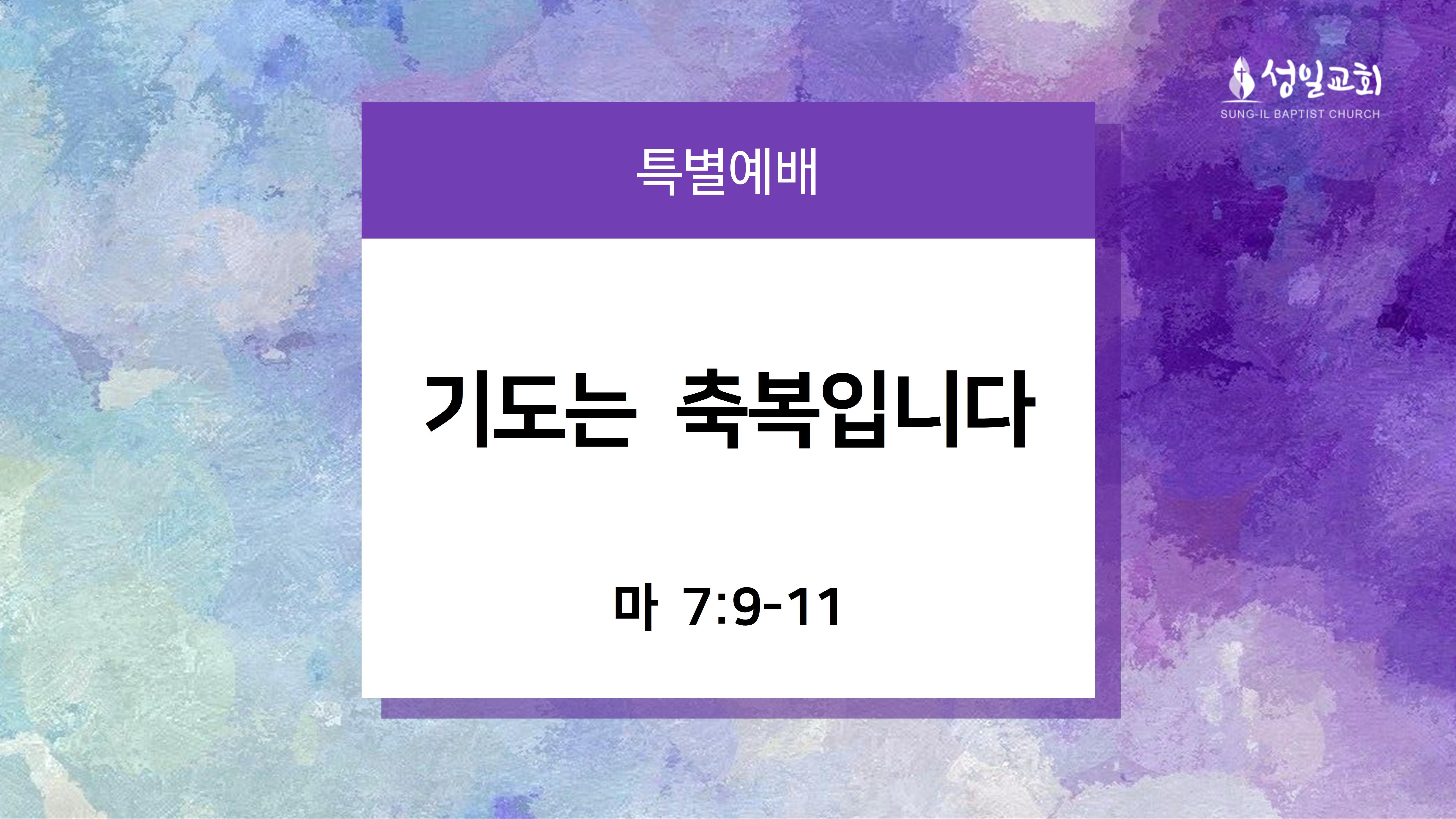 [성경본문] 마태복음7:9-11절 개역개정9. 너희 중에 누가 아들이 떡을 달라 하는데 돌을 주며 10. 생선을 달라 하는데 뱀을 줄 사람이 있겠느냐 11. 너희가 악한 자라도 좋은 것으로 자식에게 줄 줄 알거든 하물며 하늘에 계신 너희 아버지께서 구하는 자에게 좋은 것으로 주시지 않겠느냐 ■ 주일 오전 설교(2022/09/04) 제 목: 기도는 축복입니다 본 문: 마태복음 7:9-11 설교자: 장재기 목사