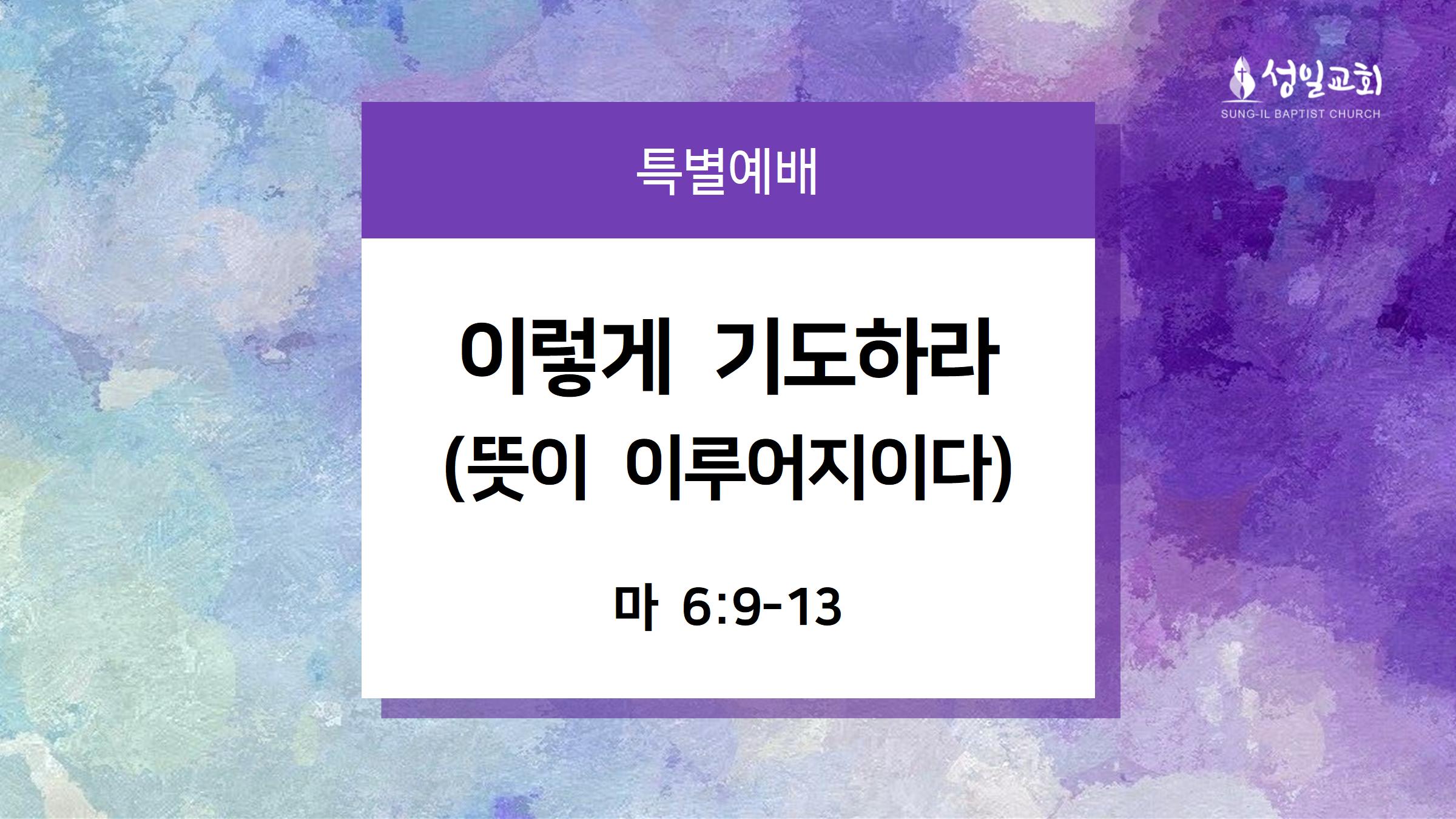 [성경본문] 마태복음6:9-13절 개역개정9. 그러므로 너희는 이렇게 기도하라 하늘에 계신 우리 아버지여 이름이 거룩히 여김을 받으시오며 10. 나라가 임하시오며 뜻이 하늘에서 이루어진 것 같이 땅에서도 이루어지이다 11. 오늘 우리에게 일용할 양식을 주시옵고 12. 우리가 우리에게 죄 지은 자를 사하여 준 것 같이 우리 죄를 사하여 주시옵고 13. 우리를 시험에 들게 하지 마시옵고 다만 악에서 구하시옵소서 (나라와 권세와 영광이 아버지께 영원히 있사옵나이다 아멘 ■ 주일 오전 설교(2023/5/7) 제 목: 이렇게 기도하라(뜻이 이루어지이다) 본 문: 마태복음 6:9-13 설교자: 이상현 원로목사
