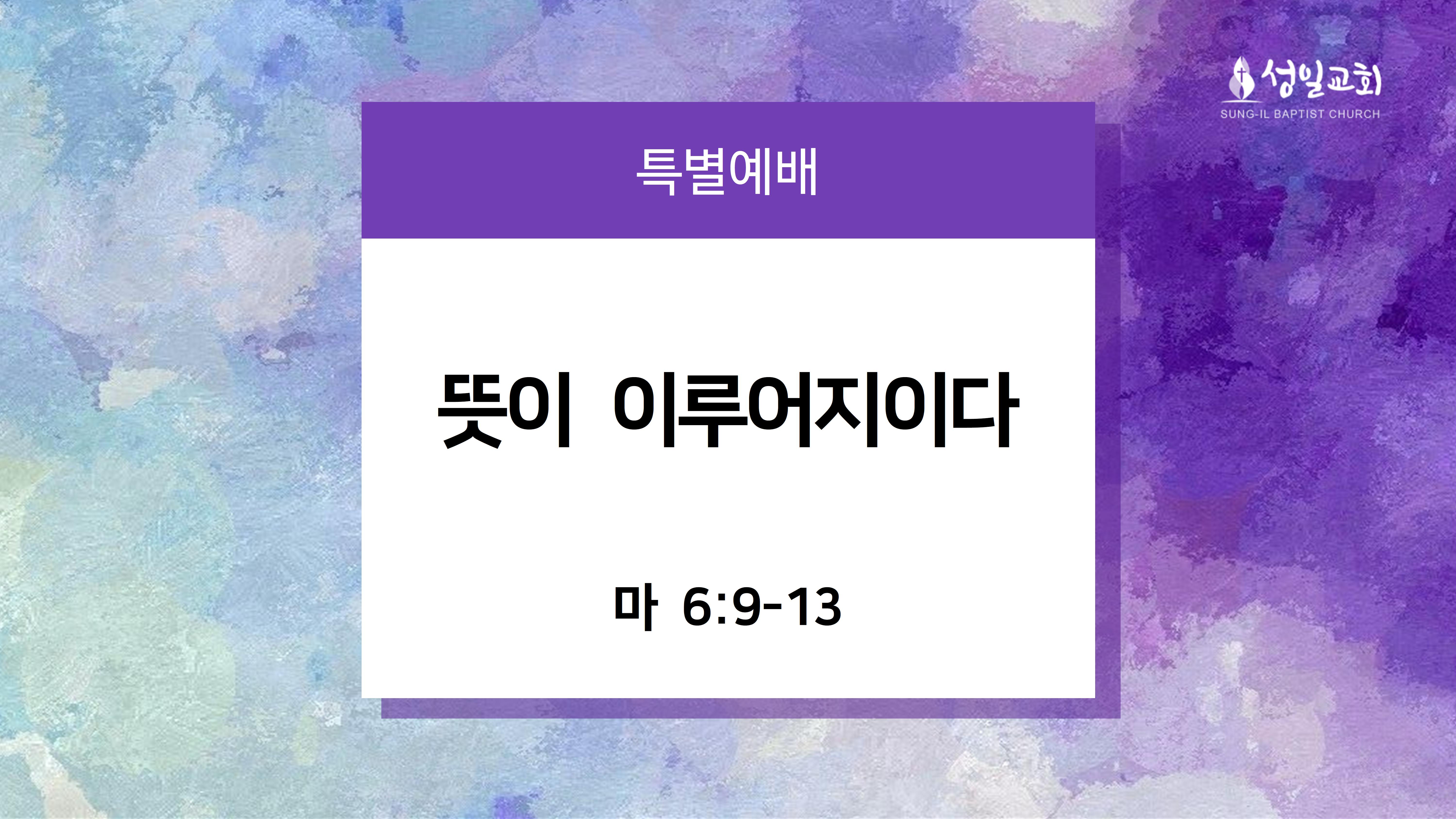 [성경본문] 마태복음6:9-13절 개역개정9. 그러므로 너희는 이렇게 기도하라 하늘에 계신 우리 아버지여 이름이 거룩히 여김을 받으시오며 10. 나라가 임하시오며 뜻이 하늘에서 이루어진 것 같이 땅에서도 이루어지이다 11. 오늘 우리에게 일용할 양식을 주시옵고 12. 우리가 우리에게 죄 지은 자를 사하여 준 것 같이 우리 죄를 사하여 주시옵고 13. 우리를 시험에 들게 하지 마시옵고 다만 악에서 구하시옵소서 (나라와 권세와 영광이 아버지께 영원히 있사옵나이다 아멘 ■ 주일 오전 설교(2023/8/20) 제 목: 뜻이 이루어지이다 본 문: 마태복음 6:9-13 설교자: 이상현 원로목사